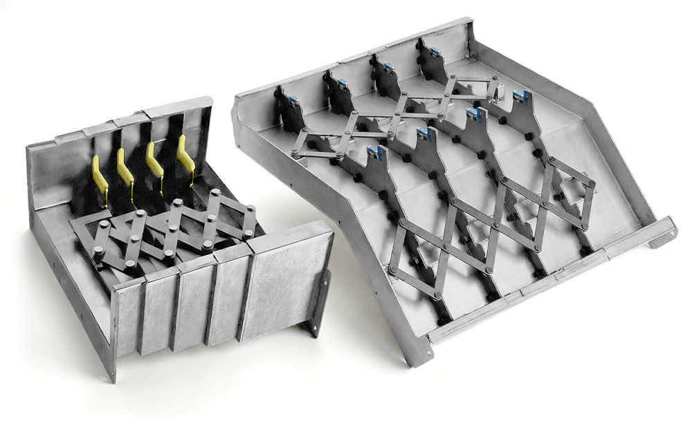Projetadas para proteger barramentos de máquinas e guias lineares, as Proteções Telescópicas são peças fabricadas em diferentes formatos para as mais variadas aplicações e necessidades especiais. Confeccionadas em chapa de aço carbono ou aço inoxidável podem ser aplicadas até mesmo em espaços desfavoráveis nas maquinas, pois permitem ser instaladas nas posições horizontal, vertical, inclinada e transversal.